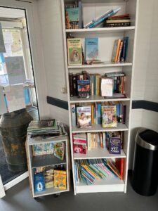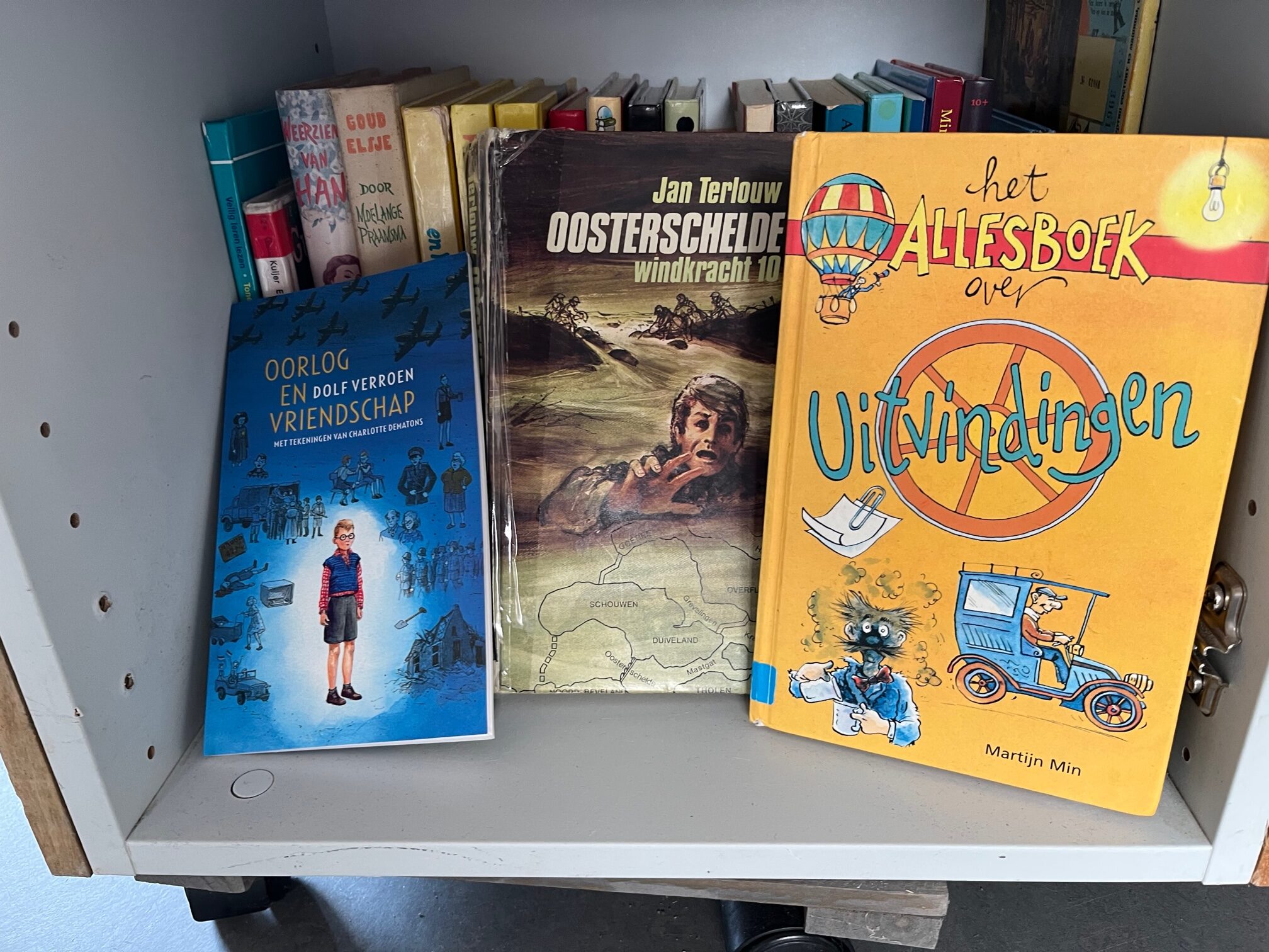 Al enige tijd is er ook een boekenkast voor grote en kleine lezers. Een boek mag meegenomen worden naar huis. (NB: Een boek uit een serie zoals bijvoorbeeld de kameleon graag ook weer terug brengen).